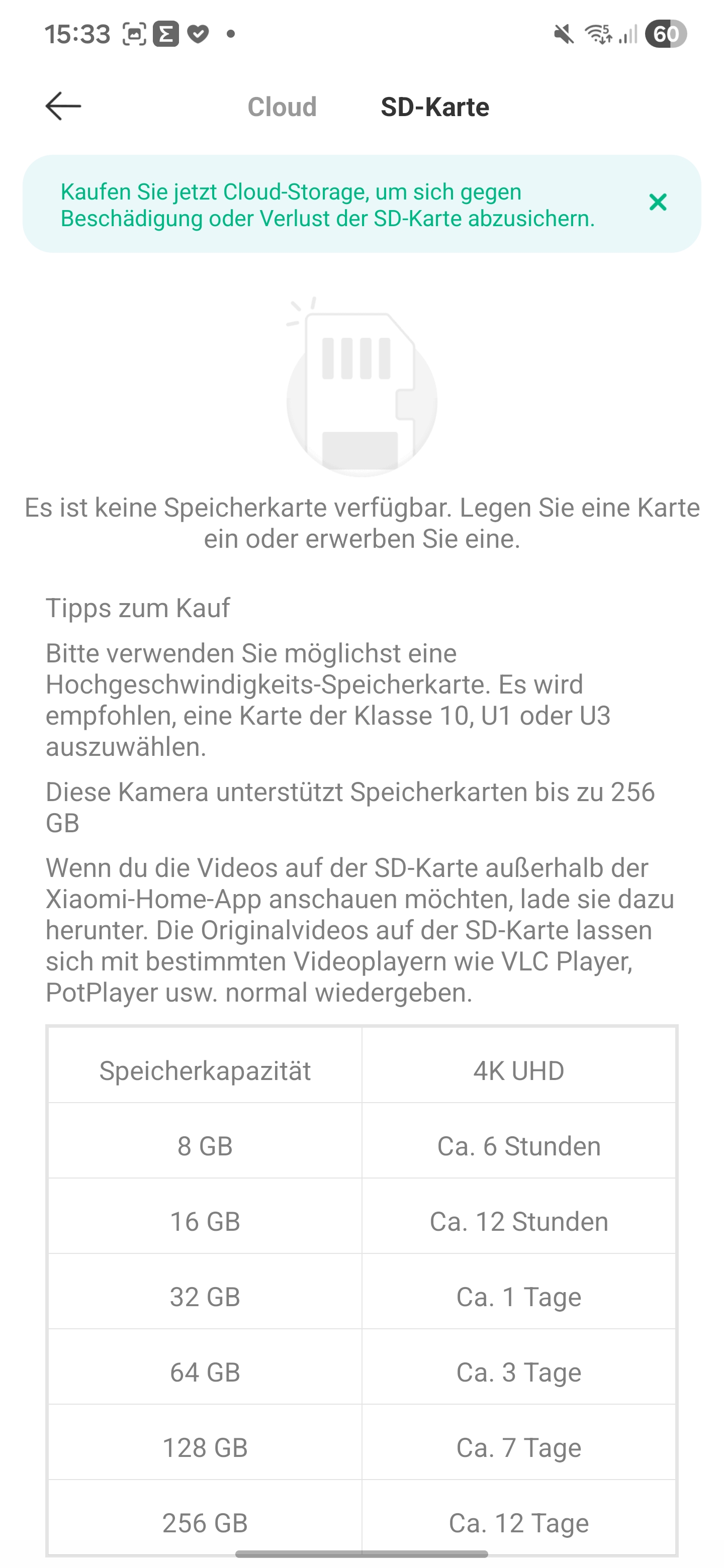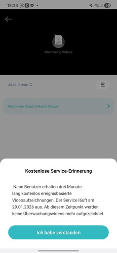 En prenumeration på Xiaomi Home Secure krävs för AI-funktioner som objektdetektering och spårning. Tre månaders fri tillgång ingår i köpet. Därefter kostar Plus-planen, som ger 30 dagars molnlagring, 3,50 euro per månad eller 33 euro per år. Lokal lagring på internminnet eller ett microSD-kort är gratis, och äldre bilder skrivs över automatiskt.