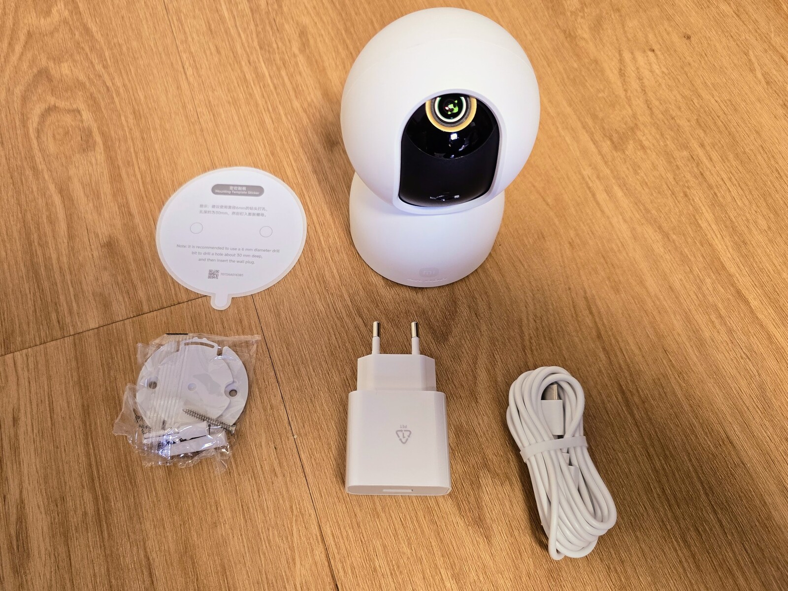 Leveransomfattningen för Smart Camera C701 är okomplicerad. Förutom själva kameran innehåller lådan en USB-kabel och en strömadapter. Tillverkaren tillhandahåller också en mall för vägg- eller takmontering.