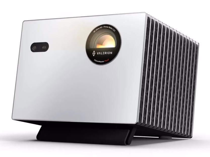 Projektionsförhållandet är fast på 1,2:1, men automatisk keystone-korrigering och automatisk fokus finns ombord och hinder som t.ex. tavelramar kan automatiskt upptäckas. 4K-projektorn behöver minst 40 tums projektionsyta och kan producera en bilddiagonal på upp till 300 tum. När det gäller anslutningsmöjligheter finns det flera HDMI-portar, en optisk ljudingång och Ethernet-port. WiFi är också integrerat. Valerion-projektorn körs på Google TV, vilket ger tillgång till ett brett utbud av appar och kan göra en extern mediaspelare överflödig. Laserprojektorn är nu tillgänglig för ett pris på 1 999 USD.