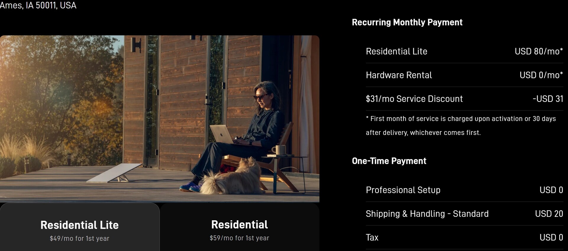 Till råga på allt har Residential Lite-planen rabatterats ytterligare ner till bara 49 USD/månad i delstaten, vilket gör Starlink till en av de mest konkurrenskraftiga Internetleverantörerna för potentiella abonnenter på landsbygden i Iowa. Dessutom erbjuder Starlink gratis installation, vilket innebär att tekniker kommer hem till dig för att montera parabolen och testa satellitanslutningen till Internet, om det behövs.