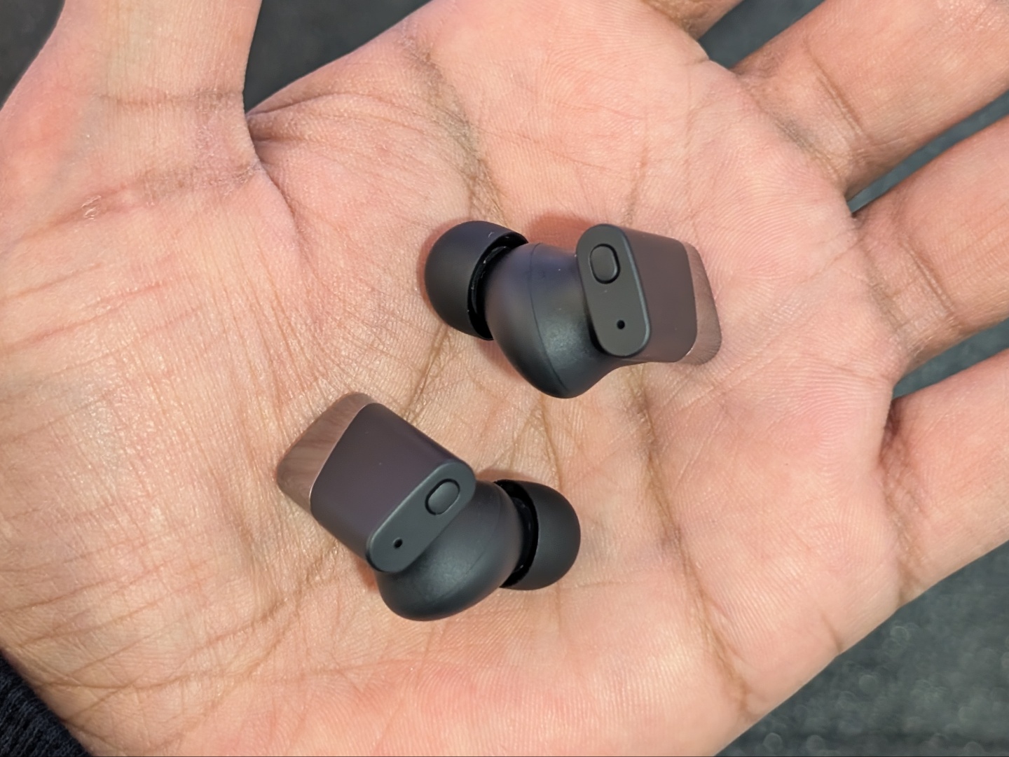 Formen och designen på Status Pro X-öronsnäckorna kan vara ganska polariserande. De har en unik formfaktor som jag personligen gillar. De är inte rundade som de traditionella öronsnäckorna utan har en mer platt och rektangulär form. Det ger en bredare yta som är lätt att röra vid för inmatningar. På tal om det, det finns både pekkontroller och fysiska knappar, med en liten på toppen av varje öronsnäcka. Medan touchkontrollerna är anpassningsbara är de fysiska knapparna inte det. De är reserverade för att växla mellan ANC-lägen och aktivera röstassistenten. Om det behövs kan du använda pekkontrollerna för att ändra ANC-lägena också, men aktiveringen av röstassistenten är exklusiv för de fysiska knapparna.