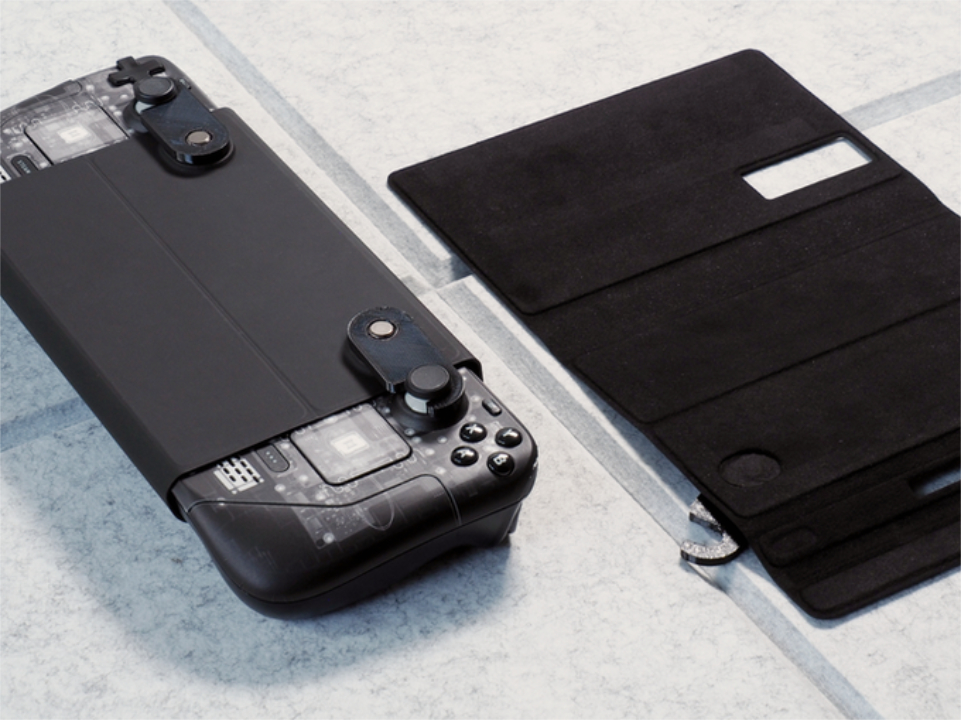 Steam Deck Folio har därför tumspakslås för att minimera skador. Tillbehöret har även ett inbyggt kickstand och utskärningar för konsolens I/O för att göra det kompatibelt med befintliga dockningslösningar. För närvarande kan Steam Deck Folio stödjas på Kickstarter för $49, inklusive frakt. Vid publiceringstillfället hoppas projektskaparen Andrew Reeves kunna påbörja leveranserna i september 2025.
