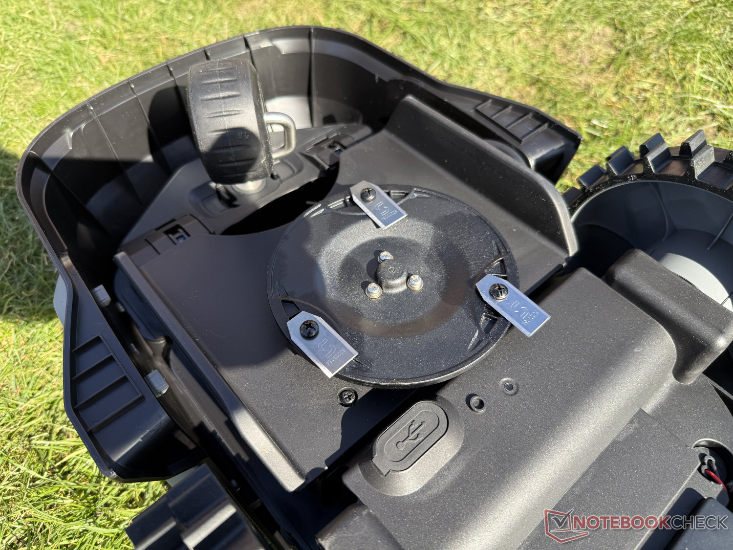 Underhållet är lika enkelt. Sunseeker V1 kan rengöras med en trädgårdsslang. För att byta de tre knivarna krävs en skruvmejsel.