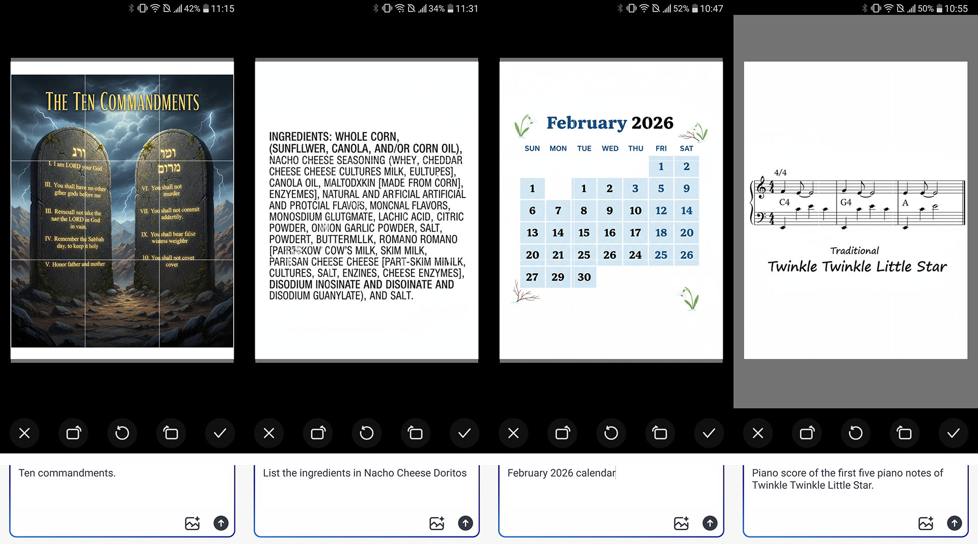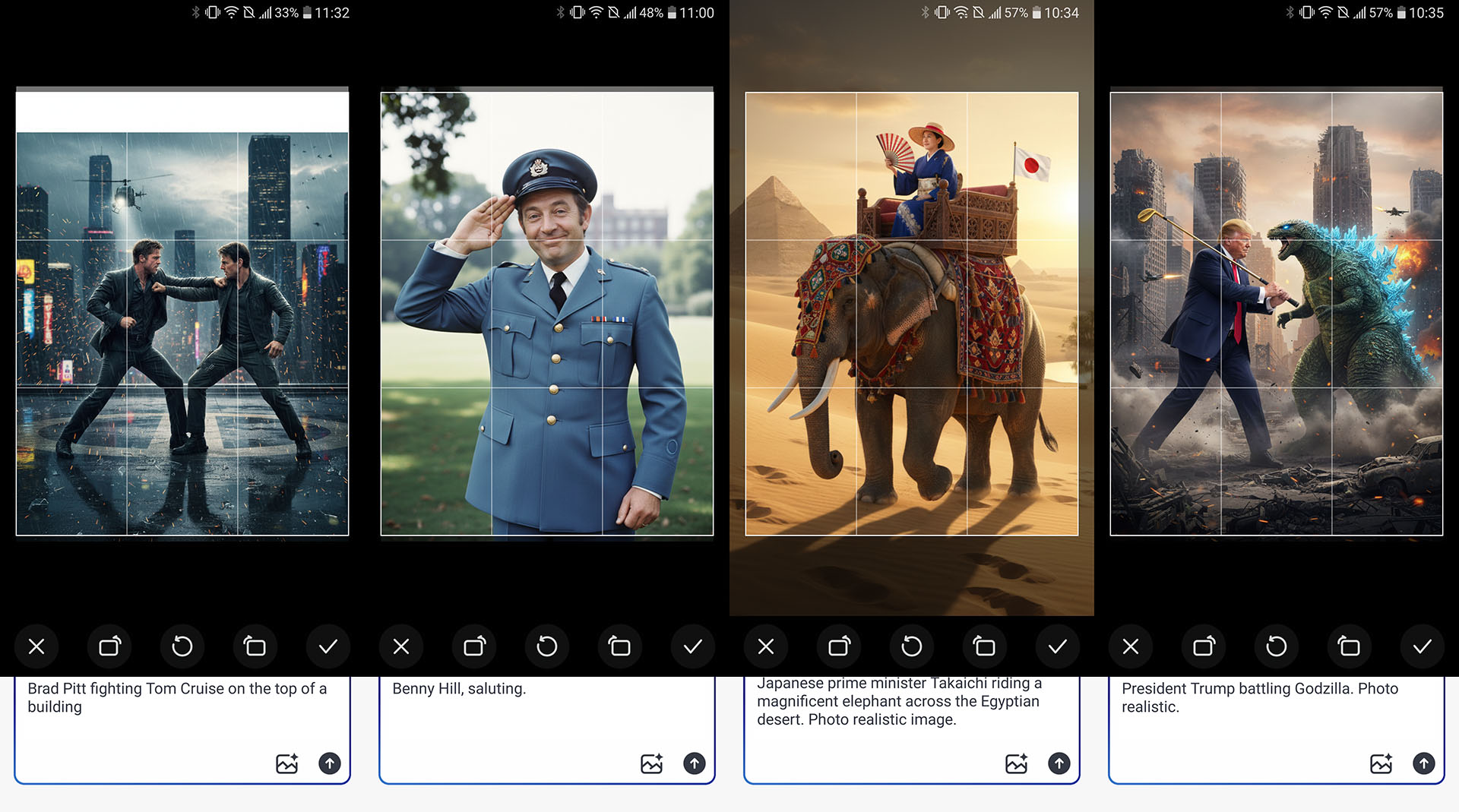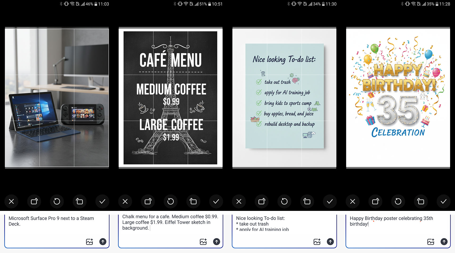 AI:t är dåligt på att skapa faktamässigt korrekt text, kartor och kalendrar, ganska pålitligt när det gäller att skapa att göra-listor och menyer, ibland opålitligt när det gäller att skapa välkända figurer och ganska bra på att skapa tecknad konst, avkopplande naturscener eller en skara söta golden retrievers. Hallucinationer kan förekomma under prompted art-generering, t.ex. ett tåg som åker på en flod eller ett felaktigt objekt som visas.