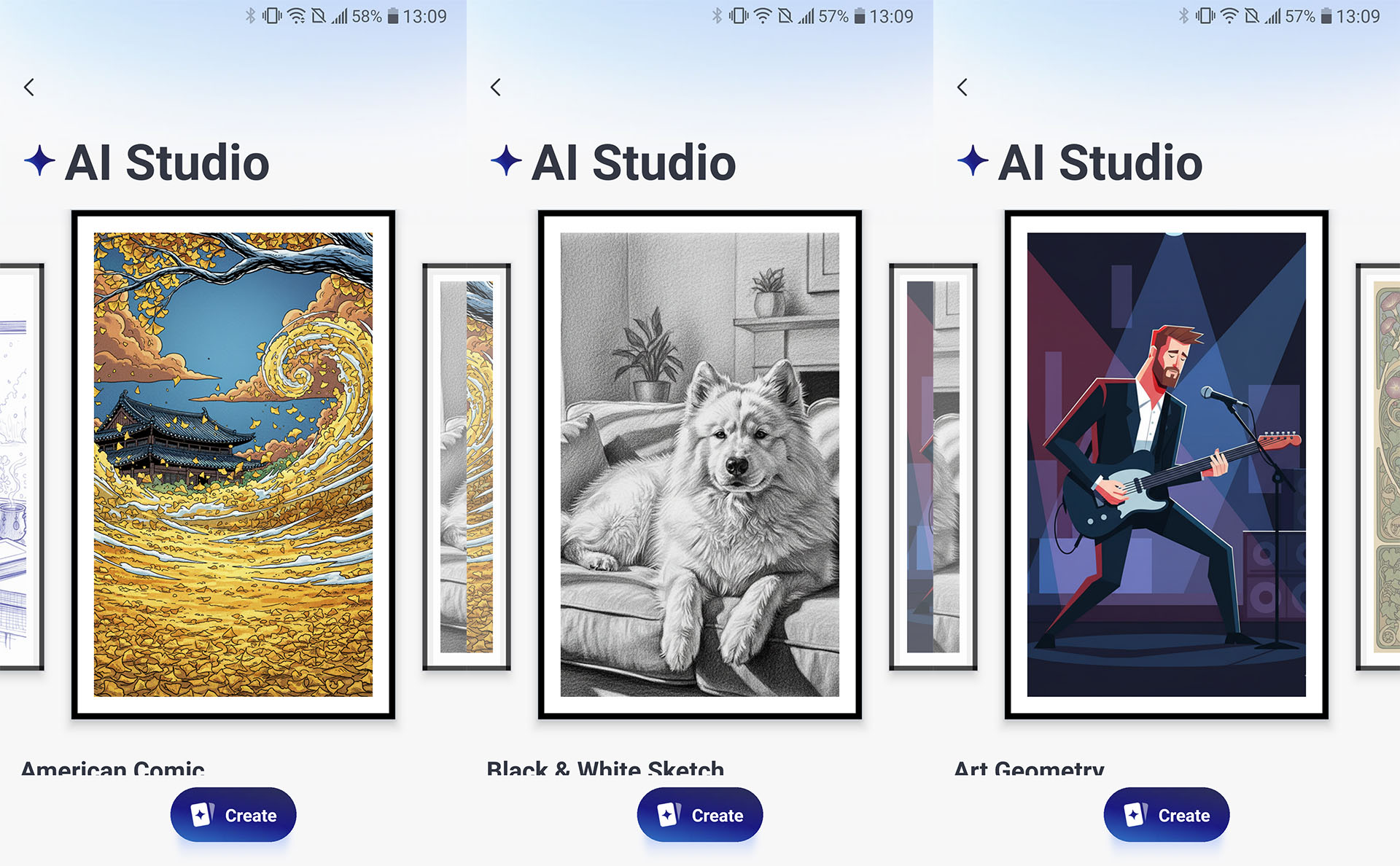 AI Studio kan automatiskt skapa konst i 11 olika konststilar eller så kan användaren styra AI:n enligt sina egna önskemål. En prenumeration på 3,99 USD per månad krävs för att använda dessa funktioner, och fakturering sker via appbutikerna.