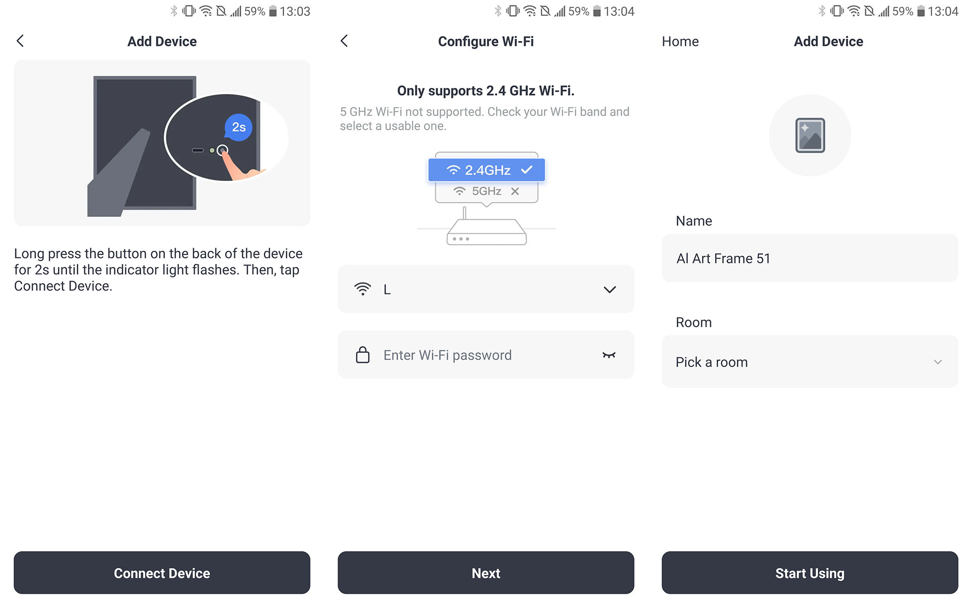 Programvaran är enkel att installera och för att lägga till konstramen krävs endast en enkel tryckning på den bakre kontrollknappen för att aktivera parkopplingsläget.