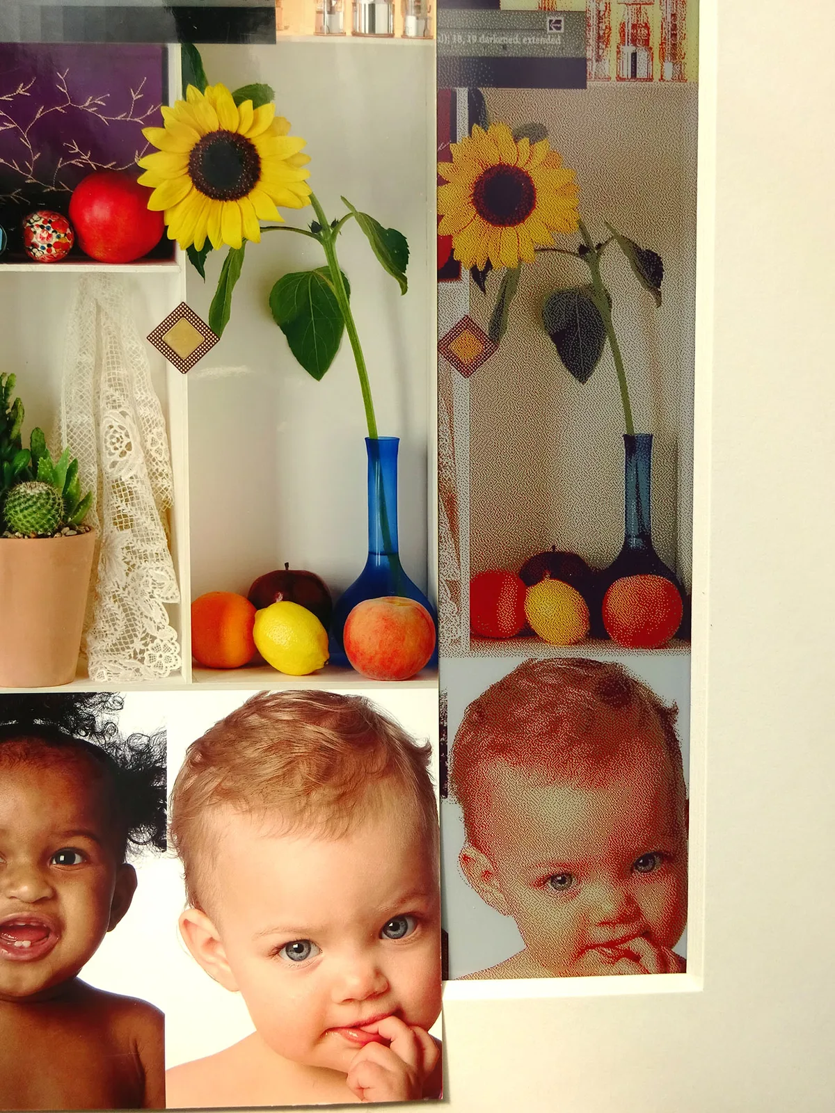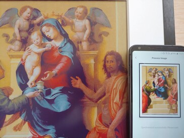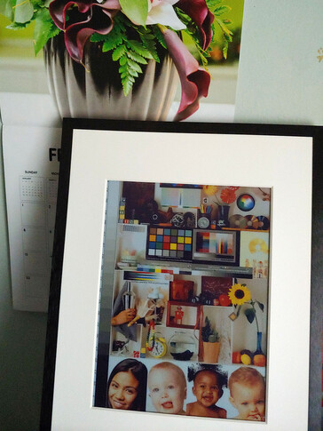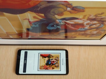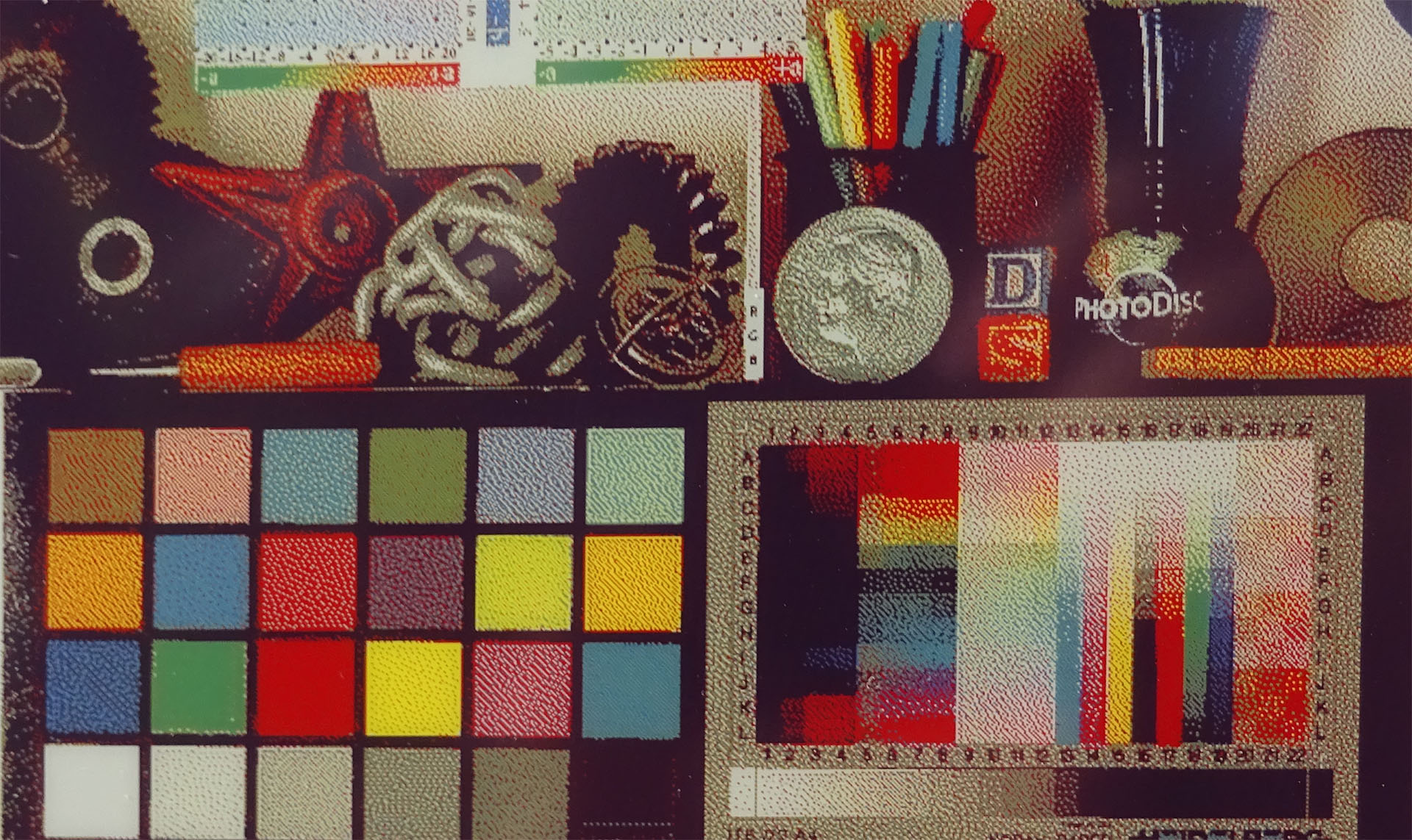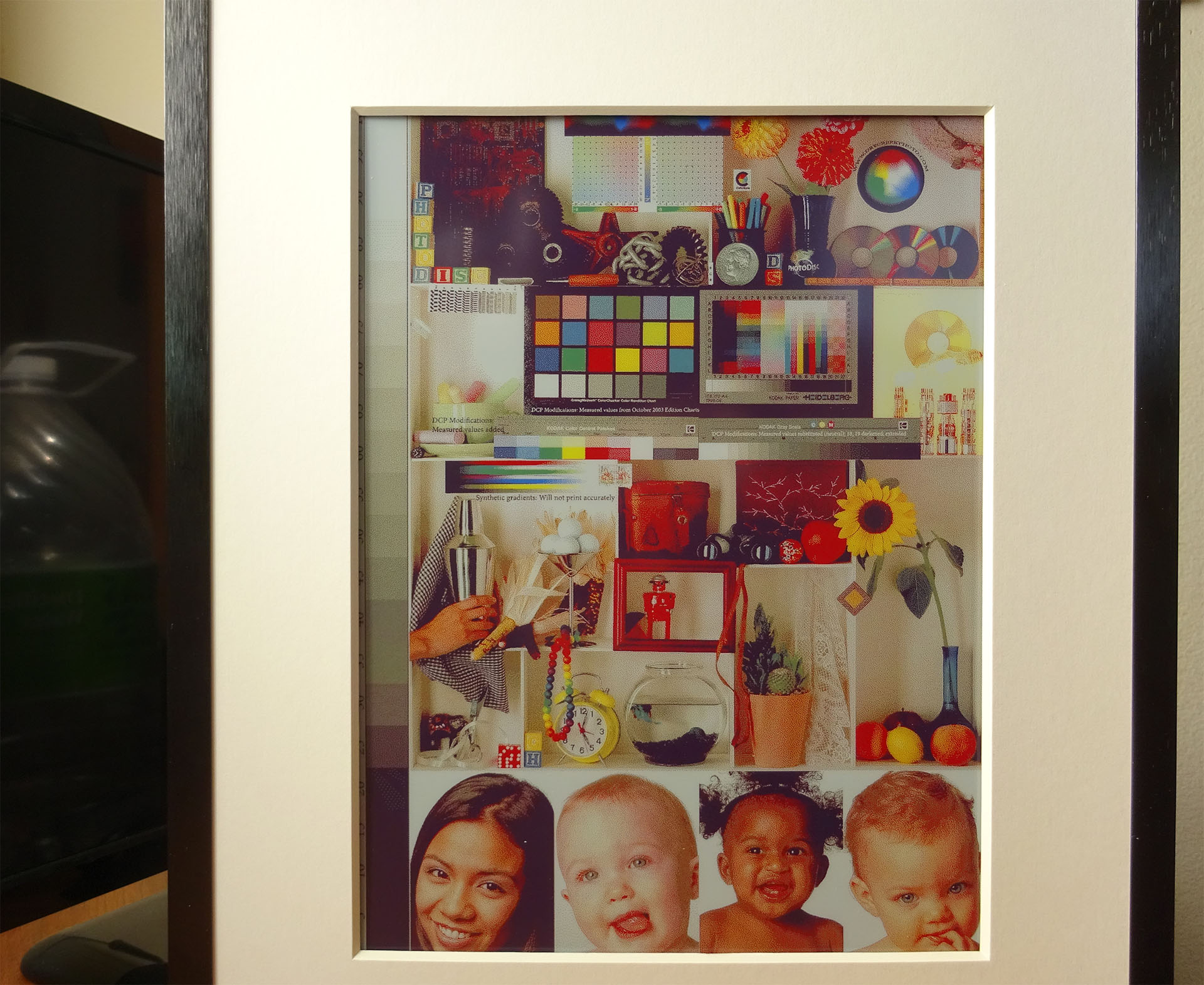En jämförelse med ett fotoprint från Photodisc testmål visar på begränsningarna hos E Ink Spectra 6-panelen. Bakgrunden är inte helt vit, vilket begränsar skuggdetaljer och maximal kontrast. Färgomfånget är också begränsat, särskilt i de gröna och blå färgerna.