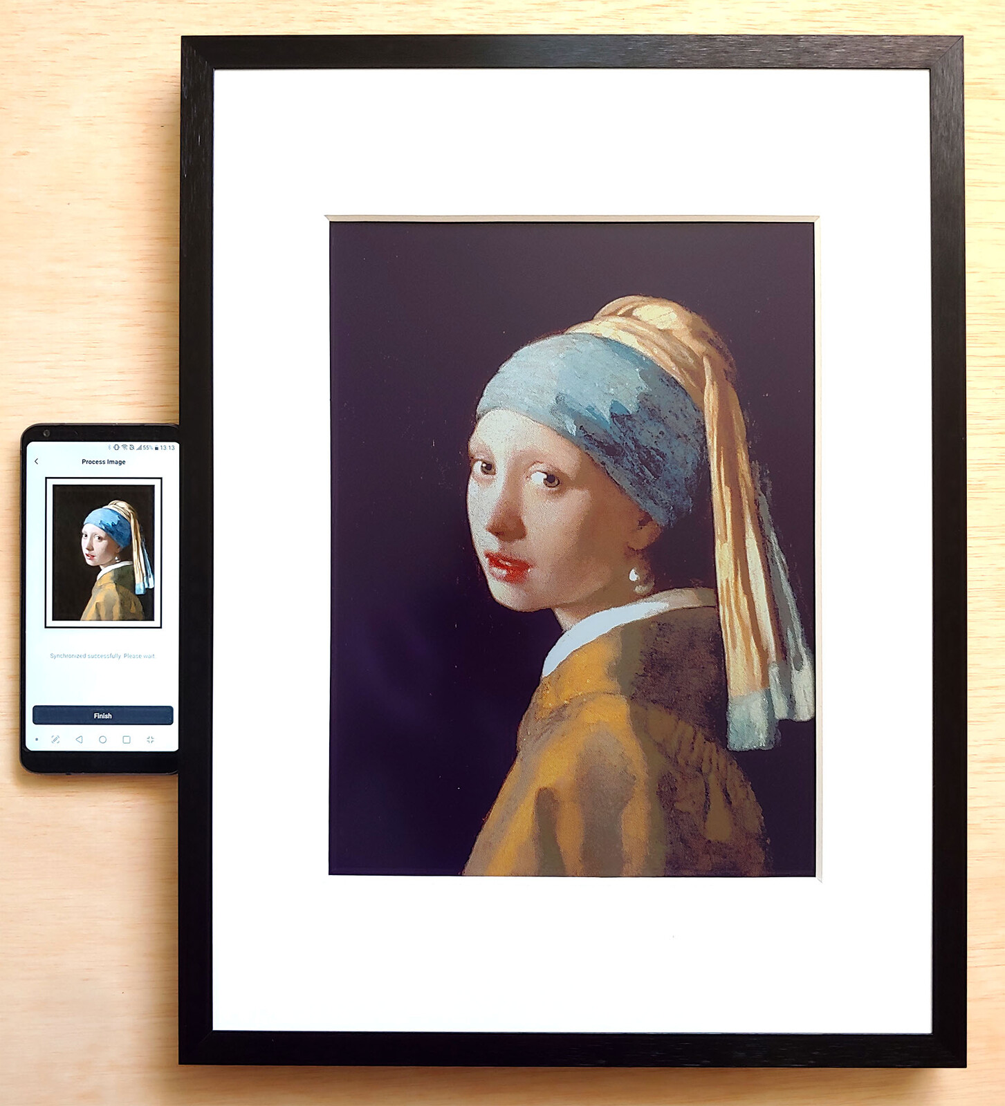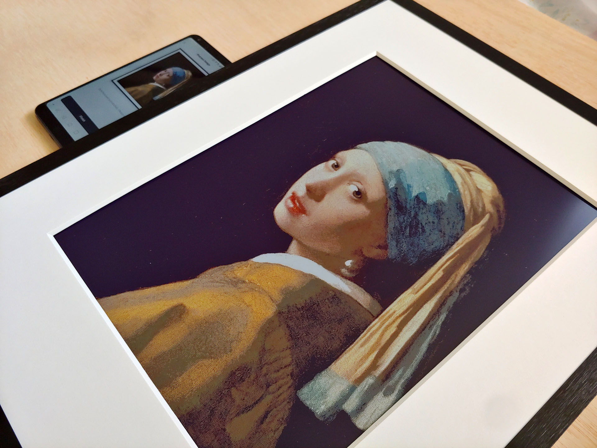 Personliga bilder och klassiska konstverk kan redigeras och sedan laddas upp på en minut, varvid den visade bilden blinkar och inverteras flera gånger. Upp till tio bilder kan lagras i konstramen för tidsinställda bildspel.