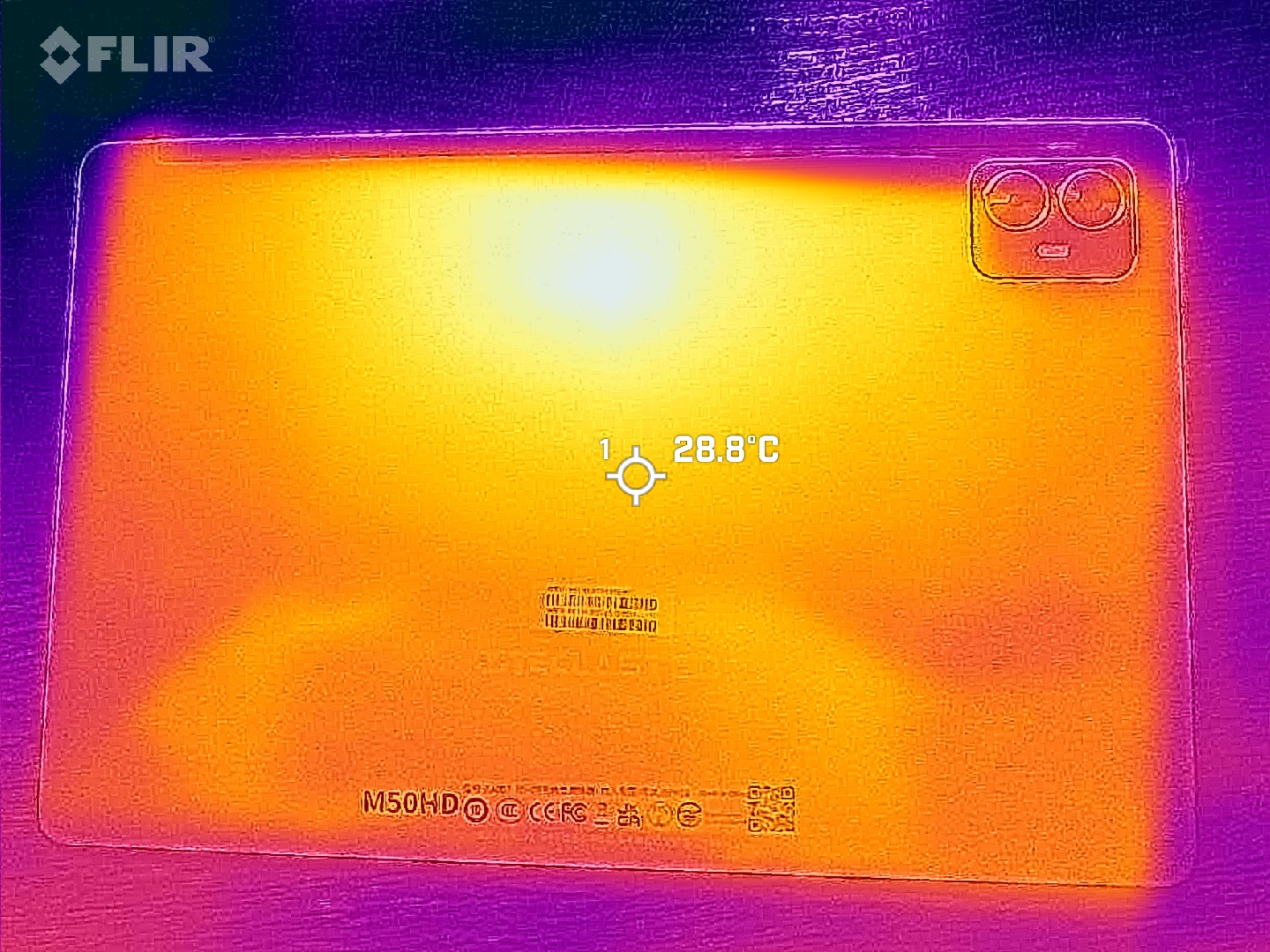 Strömförbrukningen för Teclast-surfplattan visar sig vara ganska bra, och det finns inte mycket ökad strömförbrukning. Snarare är motsatsen fallet: Teclast M50 HD är ganska effektiv, särskilt under hög belastning. Detta är också vettigt, med tanke på de relativt låga prestandavärdena för SoC.