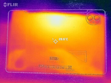 Teclast P50 är mycket stabilt under belastning. Som 3DMarks Wild Life-stresstester visade kunde den använda sin fulla prestanda praktiskt taget när som helst. Vi uppmätte endast maximalt 36,6 °C på surfplattans yta efter att utbränningsbenchmarket hade använt sin fulla prestanda i en timme i sträck.