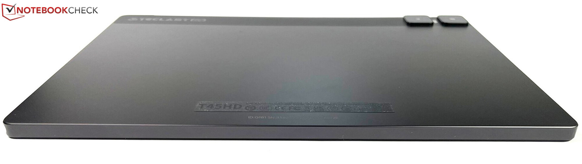 Med en vikt på 505 gram är T45HD varken särskilt lätt eller tung - den är skön att hålla i och ger ett stabilt intryck av hög kvalitet. Om du försöker kan du få fram några knakande ljud från Teclast när du vrider den. Surfplattan är inte IP-certifierad.