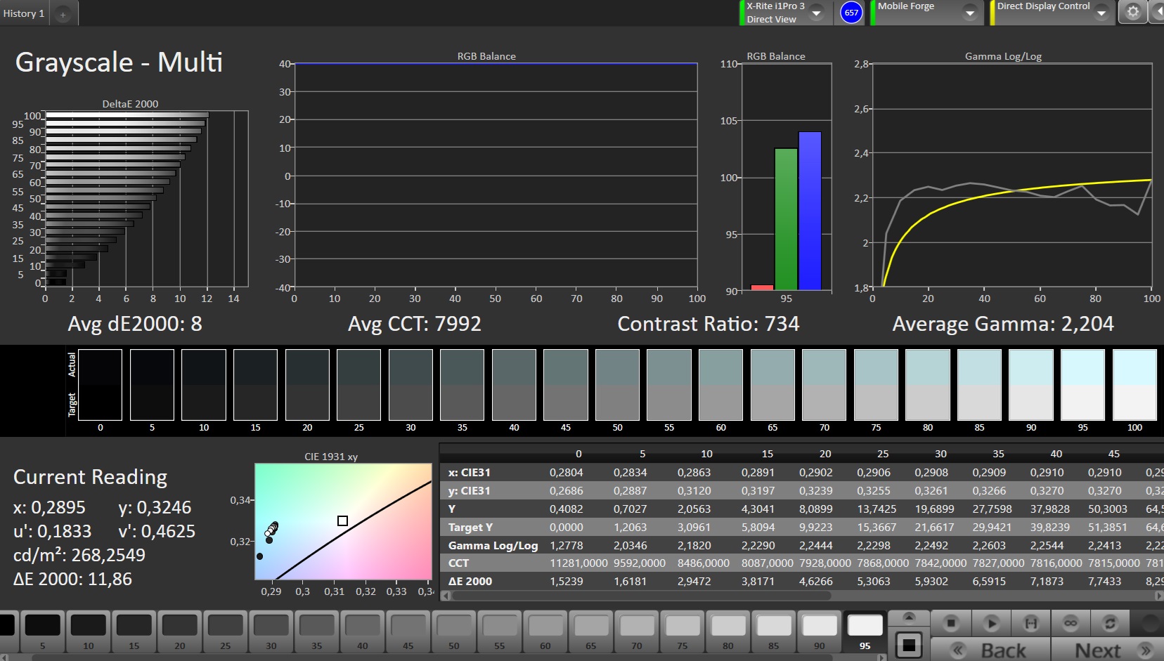 ΔE Greyscale Calman: 8 | ∀{0.09-98 Ø5}