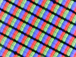 Med den fabriksinställda färglägesstandarden (varm och kall kan också väljas) ligger IPS-panelens färgåtergivning något utanför ideallinjen. Den har ett tydligt blåstick och klarar bara ett dåligt kontrastförhållande på 630:1 tack vare sitt höga svartvärde på 0,47 cd/m². Den låga färgprecisionen är inte så märkbar för blotta ögat, men den något bleka skärmen är det.