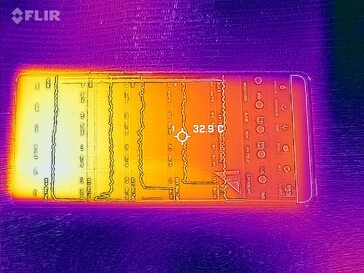 Vid långvarig belastning blev telefonens yta märkbart varm och nådde så högt som 41,1°C (106°F). Detta är dock ingen anledning till oro. 3DMark-stresstesterna visade att prestandan inte blir lidande även under långvarig belastning: telefonen fortsatte att uppnå samma bildfrekvenser även efter 20 körningar.