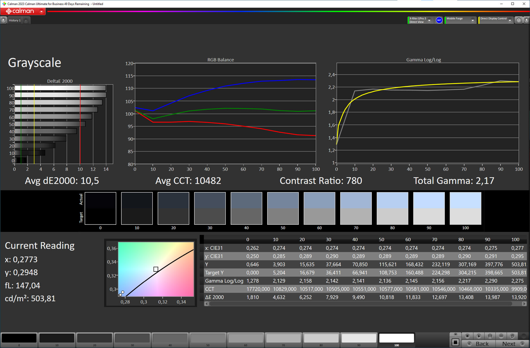ΔE Greyscale Calman: 10.5 | ∀{0.09-98 Ø5}