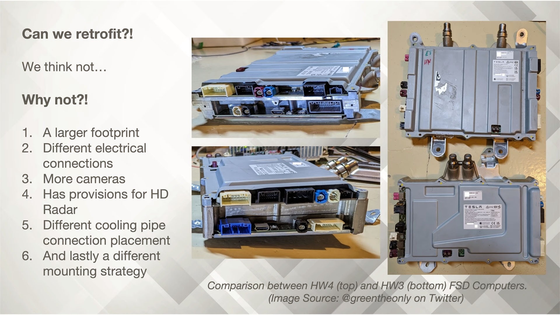 För HW3-ägare som betalade för FSD och nu tycker att deras bilar inte kan köra den mest spännande FSD-uppdateringen någonsin, dinglar Tesla två morötter. Kunder som köpte FSD kommer att erbjudas antingen en rabatterad inbyte för ett AI4-fordon eller möjligheten att byta ut både datorn och kamerasatsen. Den eftermontering i sig skulle inte vara någon trivial affär, eftersom Musk för första gången bekräftade att uppgraderingarna måste innehålla nya kameror såväl som den kraftfullare AI4-datorn, vilket innebär att partiell demontering av fordonet kommer att finnas på korten.