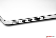 Två nya portar har också tillkommit – HDMI och USB 3.0. Vi kunde verifiera den snabbare USB-hastigheten med ett Corsair Flash Voyager GT 3.0. Windowsdatorer har haft de snabbare portarna ett tag redan, så för PC-användare är det här ingen nyhet, men för alla som byter upp sig från en äldre Mac är det en förbättring. Vi tycker att portarna i 15-tummaren räcker till för de vanliga användningsområdena, även om det behövs adaptrar för vissa. Det hade visserligen inte skadat med en till USB-port.