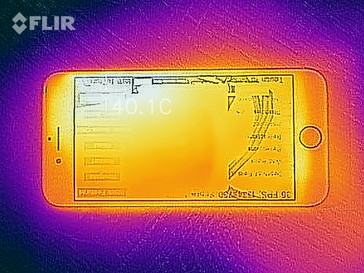 (±) Den maximala temperaturen på ovansidan är 41 °C / 106 F, jämfört med genomsnittet av 35.2 °C / 95 F , allt från 21.9 till 247 °C för klassen Smartphone.