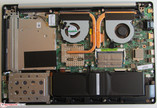 Det eleganta aluminiumhölje med två heatpipes och två fläktar stryps bara i batteriläge. Både CPU och GPU levererar mycket bra, konsekvent prestanda i nätanslutet läge. Även om det eleganta chassit inte är helt vridstyvt kompenseras det av aluminiumahandledsstödet, bra ljud med extern subwoofer, matt IPS-skärm, och ett vridstyvt chassi.