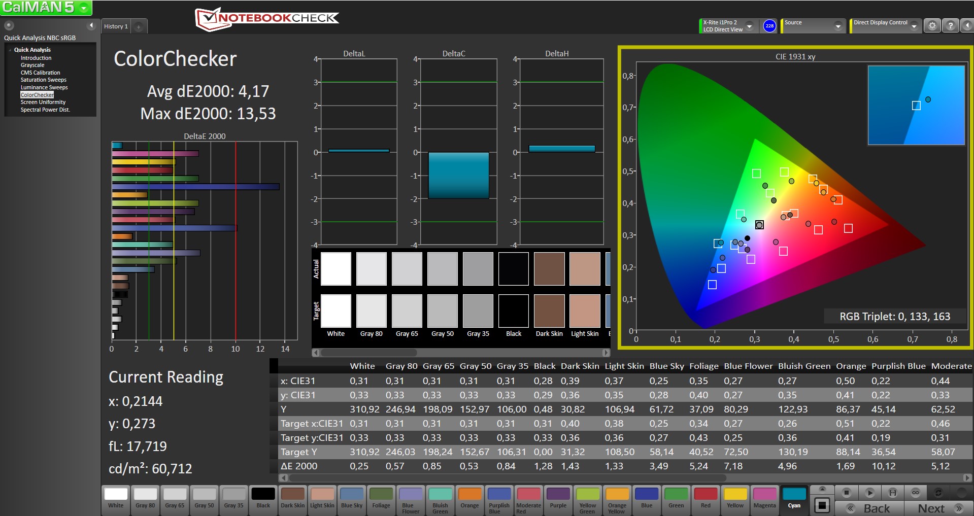 | Display P3 Coverage (%) | 39.7 | 44.71 13% | 38.9 -2% | 52.2 31% | 63.6 60% |