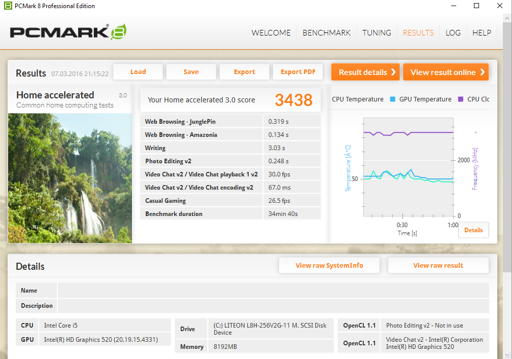 | PCMark 8 Home Score Accelerated v2 | 3438 poäng | |