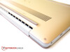 (-) Den maximala temperaturen på ovansidan är 45.2 °C / 113 F, jämfört med genomsnittet av 35.9 °C / 97 F , allt från 21.4 till 59 °C för klassen Subnotebook.