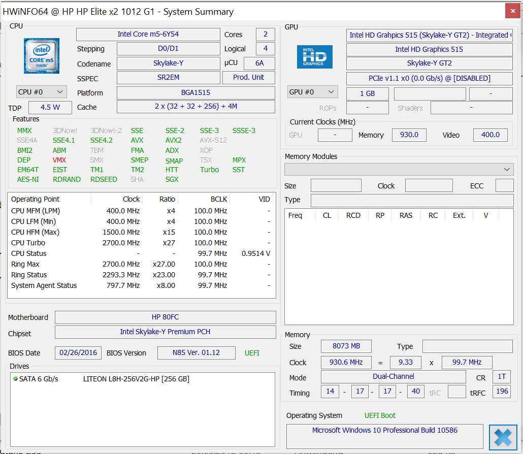 | HP Elite x2 1012 G1 6Y54, HD Graphics 515 | Microsoft Surface Pro 4, Core m3 6Y30, HD Graphics 515 | Lenovo IdeaPad Miix 700 6Y54, HD Graphics 515 | Microsoft Surface Pro 4, Core i5, 128GB 6300U, HD Graphics 520 | Apple iPad Pro 12.9 A9X, A9X / PowerVR GT7xxx | Dell XPS 12 9250 4K 6Y75, HD Graphics 515 | HP Elite x2 1011 G1 5Y51, HD Graphics 5300 | |