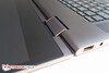 Vi har förhållandevis få invändningar: det ”bondade” skärmlocket är tungt, så gångjärnen håller det inte så säkert på plats som vi skulle vilja. Det finns heller inga skyddande kanter av något slag som omger basenheten eller skärmen; datorn glider runt på släta ytor och aluminiumkanterna är benägna att dra till sig repor om 2-i-1-maskinen används i tältläge på ojämna ytor. 4K-skalningen är fortfarande inte perfekt i Windows, och uppskattar man inte det finns inga alternativ med lägre upplösning. Sist men inte minst är en 15,6-tums 2-i-1 stor och tung, även om den har ultratunna ramar, så datorns användbarhet som surfplatta kan vara något begränsad.