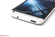På sidorna har HTC One en begränsad mängd portar. Bredvid volymknapparna sitter ett 3,5 mm stereojack och på botten finns en Micro-USB 2.0-port som stödjer Mobile High-Definition Link (MHL). Med en billig adapter går det med andra ord att överföra material till en TV eller datorskärm via HDMI. En speciell egenskap gömmer sig i strömbrytaren, där man byggt in en infraröd port. Det är en praktisk funktion som också finns på Samsung Galaxy S4. Sony har för närvarande bara en sådan komponent i Xperia ZL.