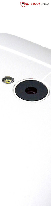 HTC ger sig inte in i megapixelracet utan har satsat på en huvudkamera på baksidan med en upplösning på 4 megapixel (2688x1520 bildpunkter). Det är en så kallad UltraPixel-kamera med BSI-sensor, HTC ImageChip 2 och 28-millimeters objektiv med bländarförhållandet F2.0 som sina huvudkomponenter. Jämfört med en kamera med 13-megapixelsensor är de enskilda pixlarna större, så att mer ljus kan fångas. Bilderna kvalificerar inte för stora affischer, men smartphonekameran ändå är främst avsedd för ögonblicksbilder. Vi rekommenderar inte att den optiska zoomen, då bildkvaliteten snabbt minskar eftersom pixlarna bara skalas upp.