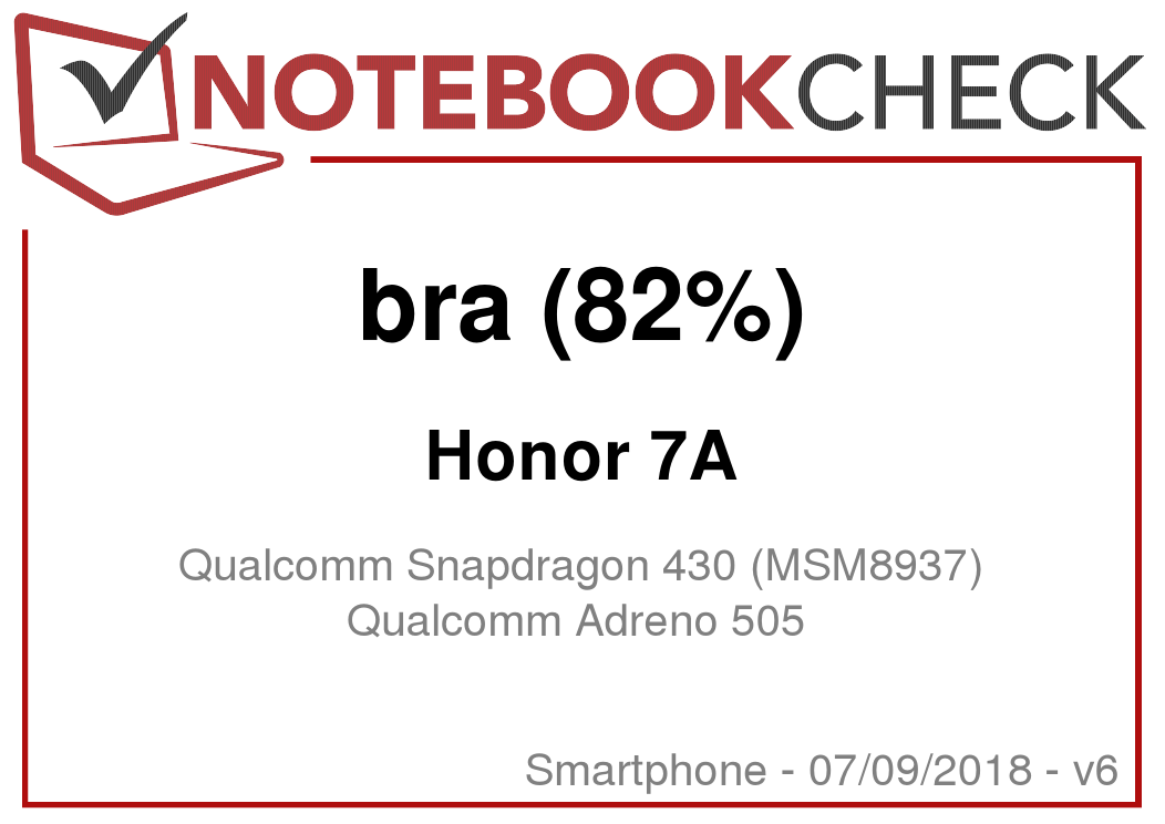 | Honor 7A 3000 mAh | Umidigi A1 Pro 3150 mAh | Huawei Y6 2018 3000 mAh | Lenovo Moto E4 Plus 5000 mAh | Sony Xperia L1 2620 mAh | Genomsnitt Qualcomm Snapdragon 430 (MSM8937) | Genomsnitt av klass Smartphone | |