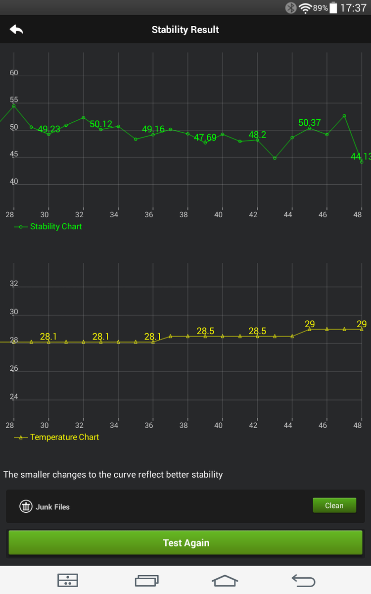 (+) Den maximala temperaturen på ovansidan är 37.1 °C / 99 F, jämfört med genomsnittet av 33.7 °C / 93 F , allt från 20.7 till 53.2 °C för klassen Tablet.