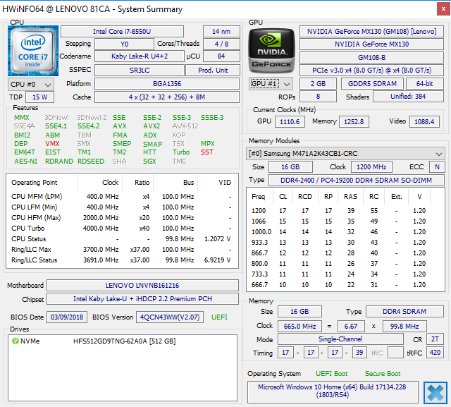 | Lenovo IdeaPad Flex-1570 81CA000RUS GeForce MX130, i5-8550U, SK Hynix PC401 512GB M.2 (HFS512GD9TNG) | Dell XPS 15 9575 i7-8705G Vega M GL / 870, i7-8705G, SK hynix PC401 NVMe 500 GB | Lenovo Ideapad 530S-15IKB UHD Graphics 620, i5-8250U, SK hynix PC401 HFS256GD9TNG | Asus ZenBook Flip 15 UX561UD GeForce GTX 1050 Mobile, i5-8550U, Micron 1100 MTFDDAV256TBN | HP Envy x360 15-bq102ng Vega 8, R5 2500U, Samsung PM961 MZVLW256HEHP | |