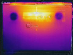 (±) Den maximala temperaturen på ovansidan är 43.4 °C / 110 F, jämfört med genomsnittet av 38.2 °C / 101 F , allt från 22.2 till 69.8 °C för klassen Workstation.