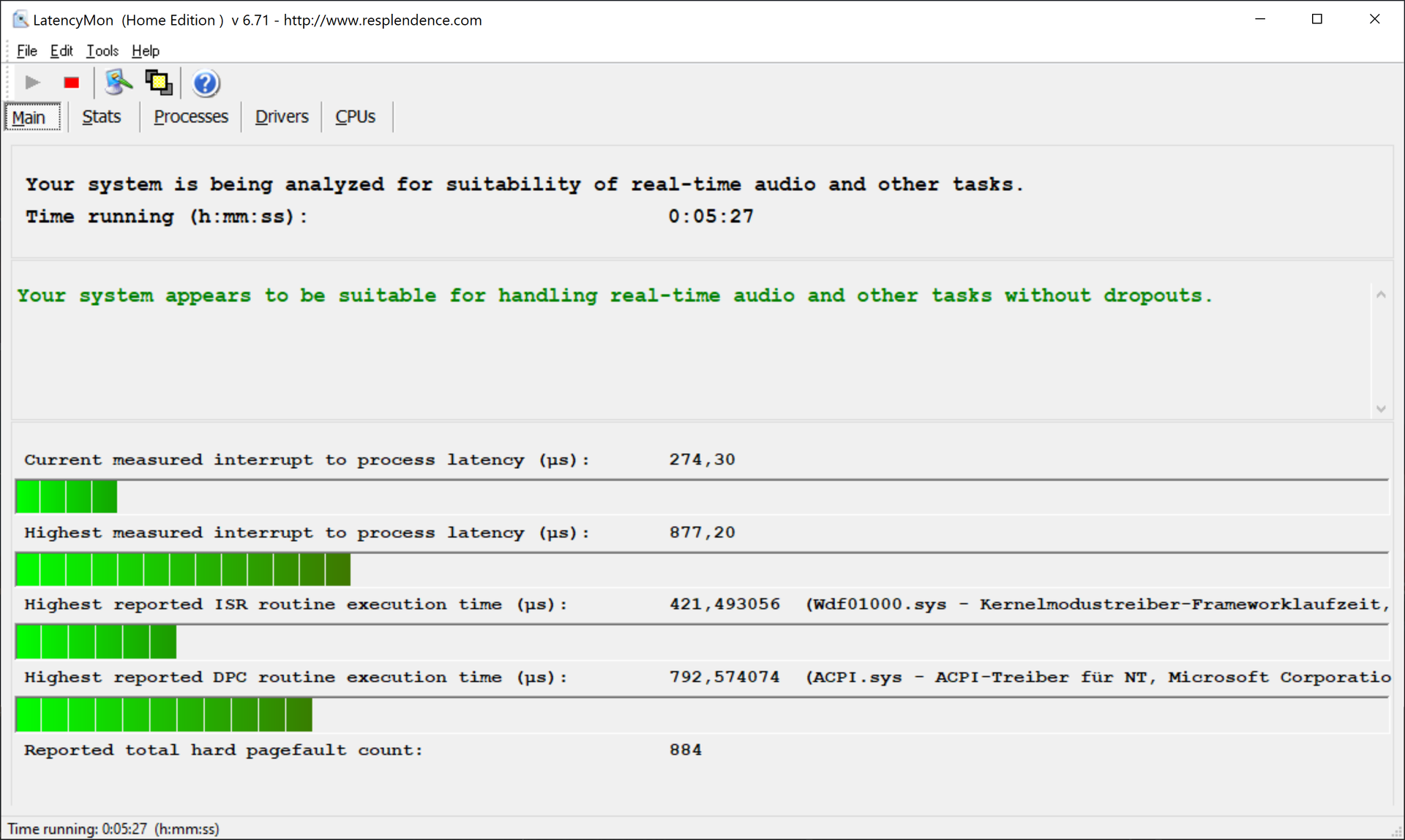 (+) | det totala ljudet är linjärt (6.9% skillnad mot median)