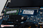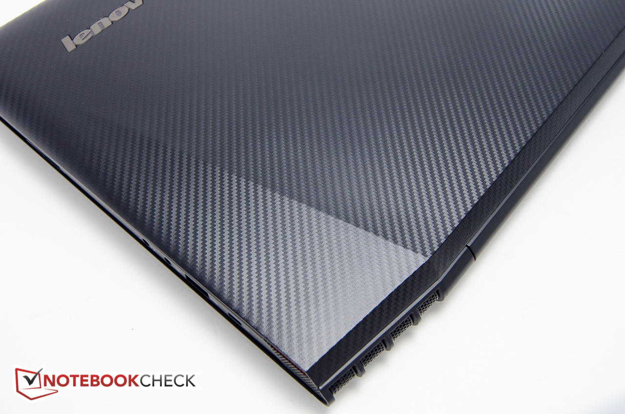 Vi uppskattade den robusta konstruktionen trots fejkad kolfiber. Handlovsstödet i metall och andra aspekter gör datorn visuellt tilltalande. Den blanka plasten Lenovo använder för ramen och gångjärnsskyddet drar visserligen ner utseende något. En 256 GB SSD är också ett välkommet tillskott i en här prisklassen, eftersom prestandan blir betydligt högre än med hybridlösningar, även om ett stort antal spel kommer att fylla upp det tillgängliga utrymmet ganska snabbt.