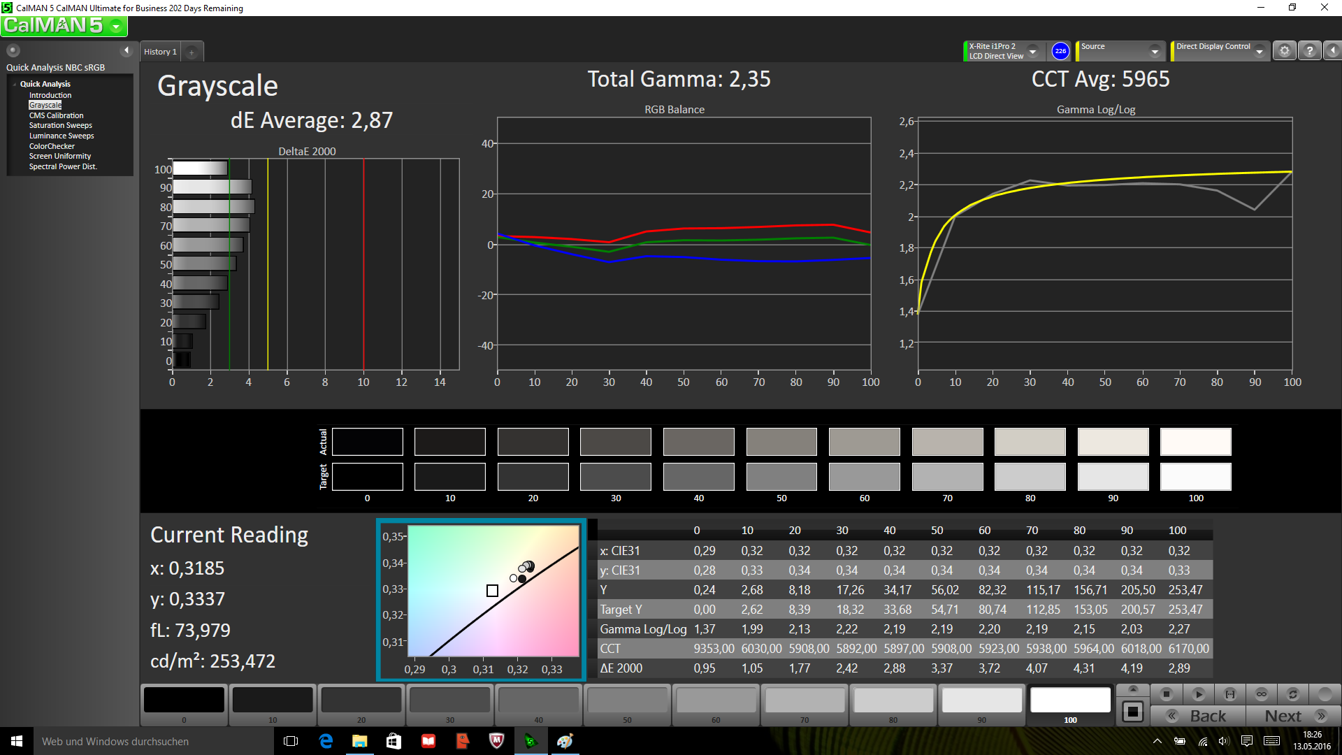 ΔE Greyscale Calman: 2.87 | ∀{0.09-98 Ø5}