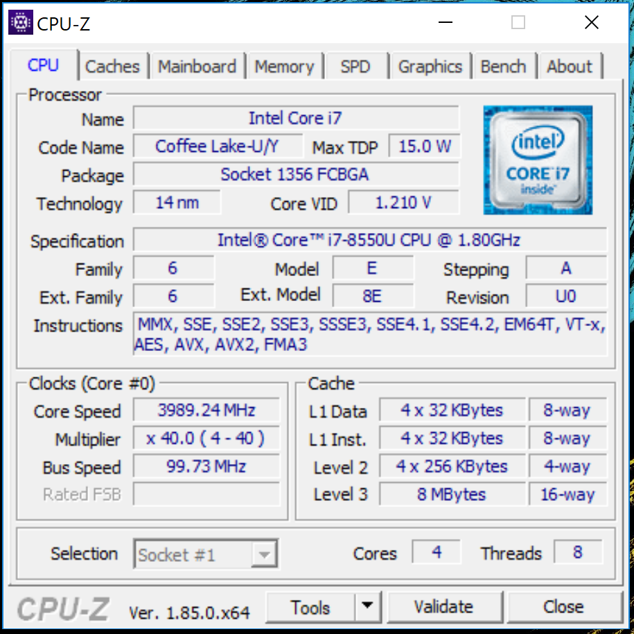 | Genomsnitt Intel Core i7-8550U (1.43 - 1.95, n=32) | |
