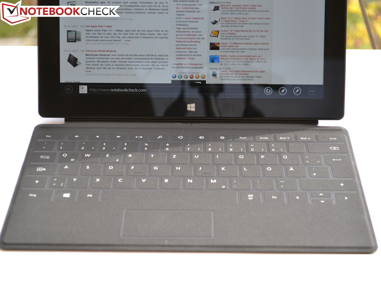 Alternativt kan användaren sätta fast Touch Cover, som liksom Apples Smart Cover fungerar som ett intelligent skärmskydd som sätter surfplattan i standby-läge när den stängs. Microsoft har byggt in ett tryckkänsligt tangentbord och en pekplatta på insidan av det vattentäta skyddet, medan utsidan täcks av ett filtliknande material. Om ett finger bara placeras lätt på en knapp eller glider över den, registrerar inte tangentbordet rörelsen. Måtten är väl avvägda även om musplattan är något liten.