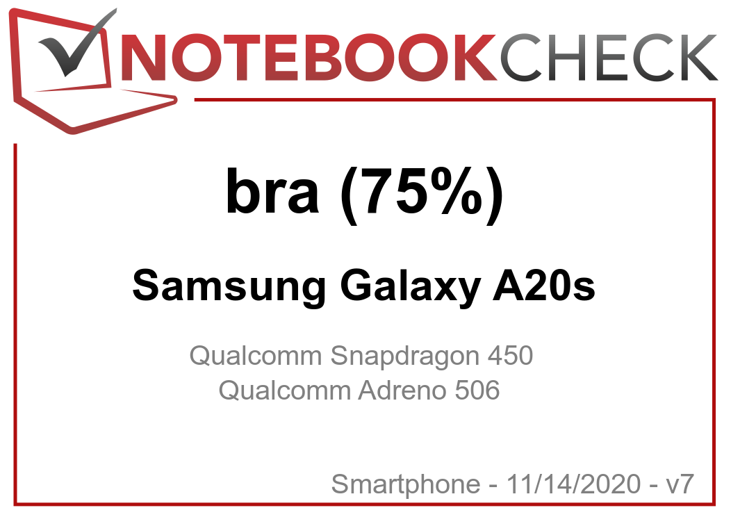 | 75.4 % v7 (old) | 11/2020 | Samsung Galaxy A20s SD 450, Adreno 506 | 183 g | 32 GB eMMC Flash | 6.50" | 1560x720 | |