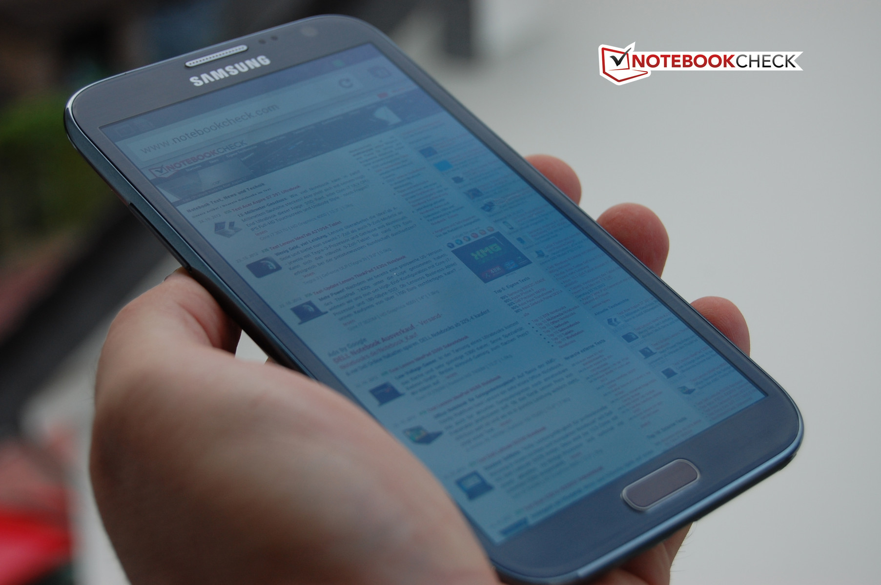 En typisk specialitet bland organiska LED-skärmar är betraktningsvinklarna. Samsungs Galaxy Note 2 är (nästan) inget undantag. Färger och ljusstyrka är stabila upp till väldigt snäva vinklar. Vi hade inte förväntat oss något annat. Tyvärr blir blåskiftningarna mer påtagliga i snäva vinklar, vilket tar ner den i övrigt fina helhetsupplevelsen lite.