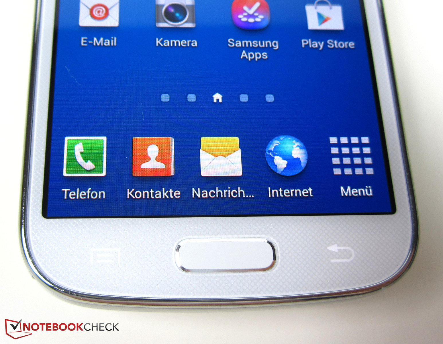 4,3-tumsskärmen ("Super AMOLED") har en upplösning på 960x540 pixlar, samma som Galaxy S4 Mini. Det är en relativt låg upplösning jämfört med några av konkurrenterna som i vissa fall har Full HD-upplösning.