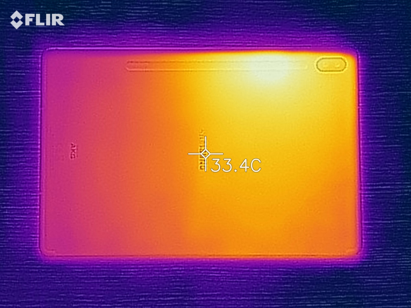 (+) Den maximala temperaturen på ovansidan är 34 °C / 93 F, jämfört med genomsnittet av 33.7 °C / 93 F , allt från 20.7 till 53.2 °C för klassen Tablet.