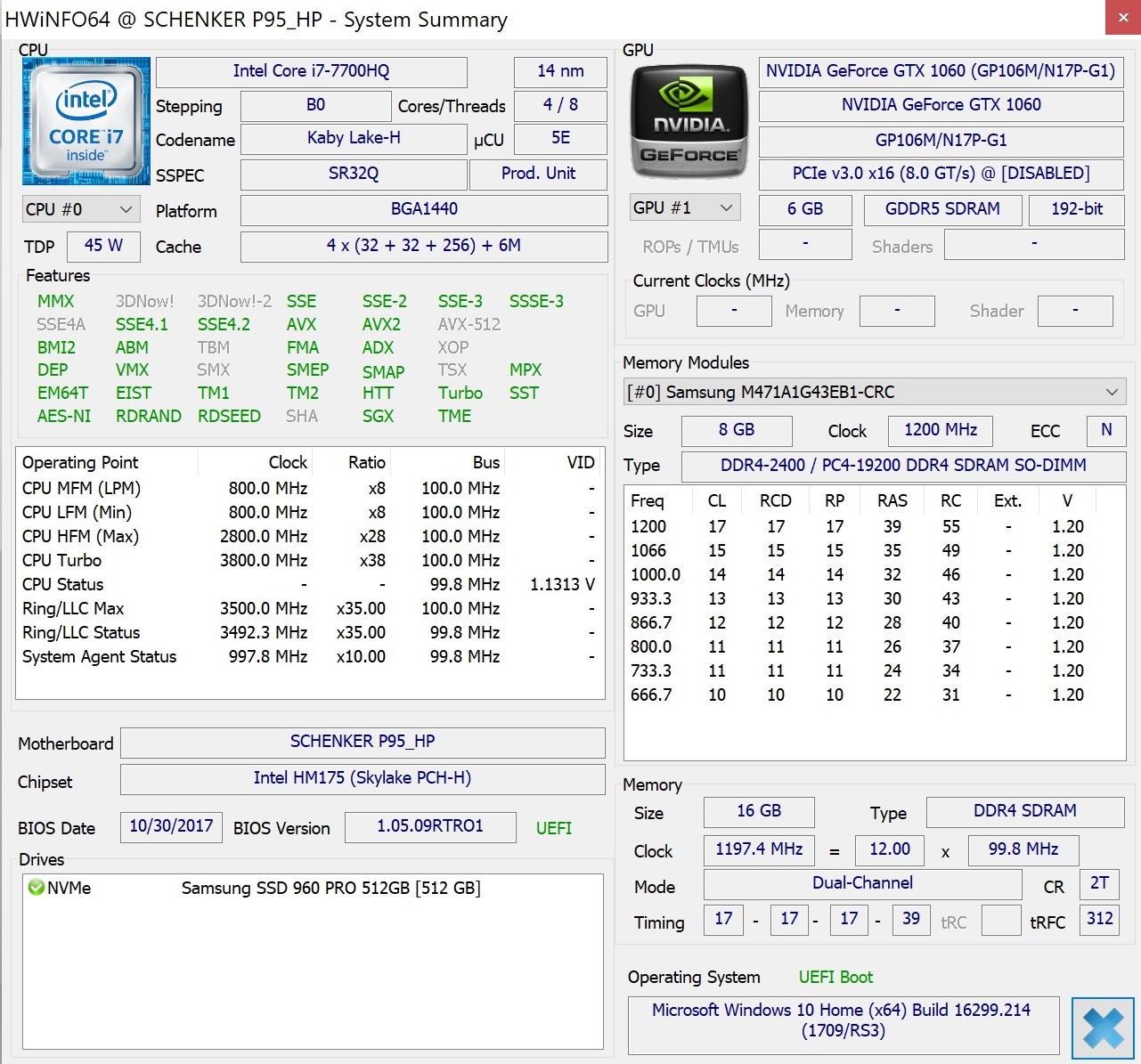 | Schenker Key 15 GeForce GTX 1060 Mobile, i7-7700HQ | Gigabyte Aero 15 GeForce GTX 1060 Mobile, i7-7700HQ | Acer Aspire VN7-593G-73HP V15 Nitro BE GeForce GTX 1060 Mobile, i7-7700HQ | Asus Zenbook Pro UX550VE-DB71T GeForce GTX 1050 Ti Mobile, i7-7700HQ | Dell XPS 15 9560 (i7-7700HQ, UHD) GeForce GTX 1050 Mobile, i7-7700HQ | |
