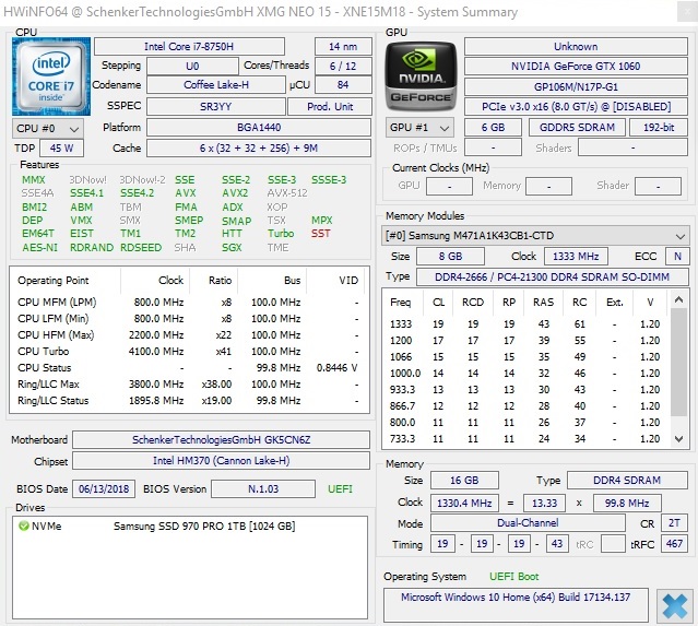 Test: Schenker XMG Neo 15 (i7-8750H, GTX 1060, Full-HD) Laptop (Sammanfattning)
