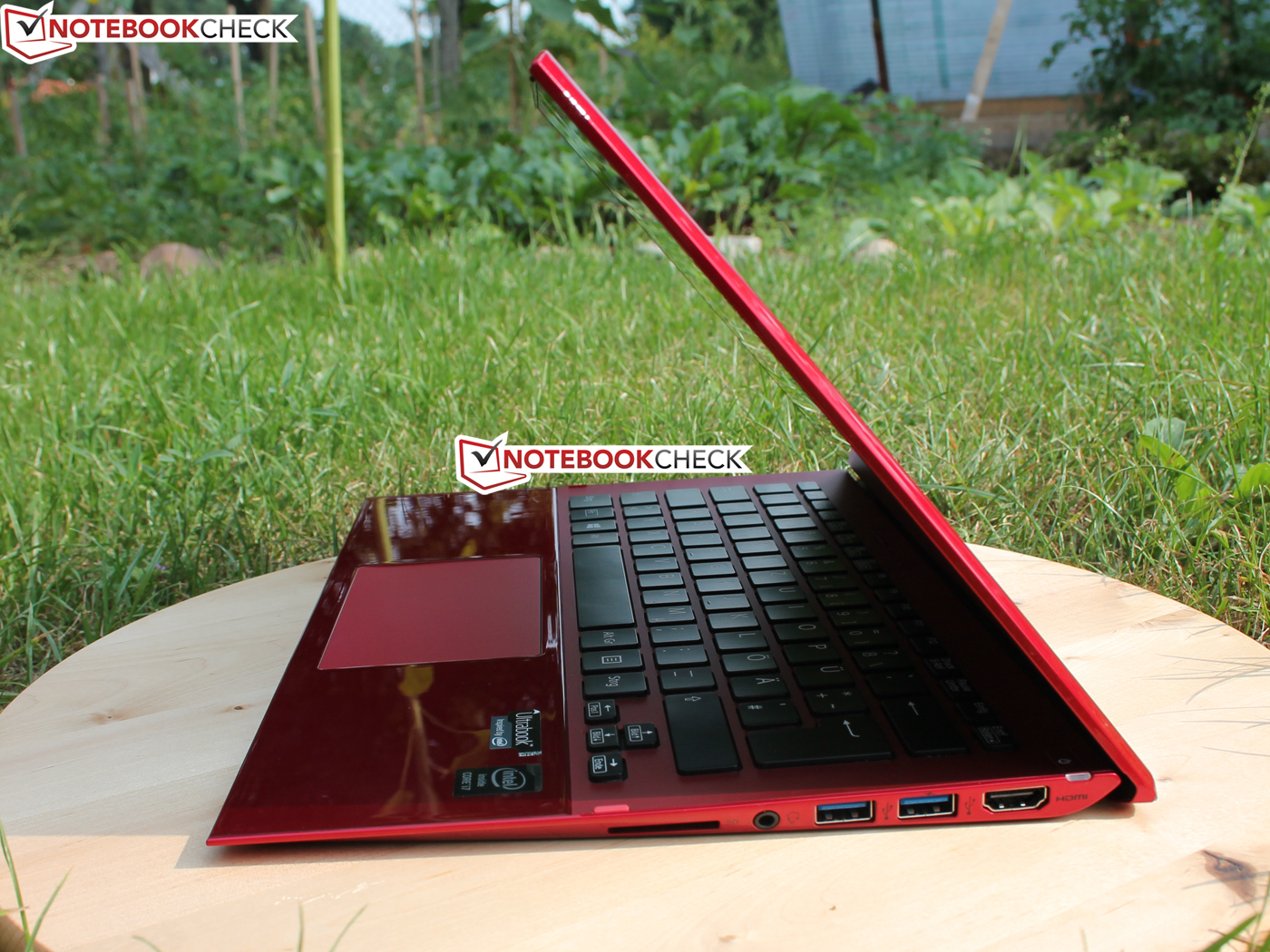 Vi börjar med de positiva aspekterna: Den mycket ljusstarka pekskärmen övertygar med sin utmärkta färgåtergivning (94% sRGB). Tack vare Full HD-upplösningen och de breda betraktningsvinklarna tack vare IPS-panelen är datorn även lämpad för professionell användning, som grafik, programmering, design.