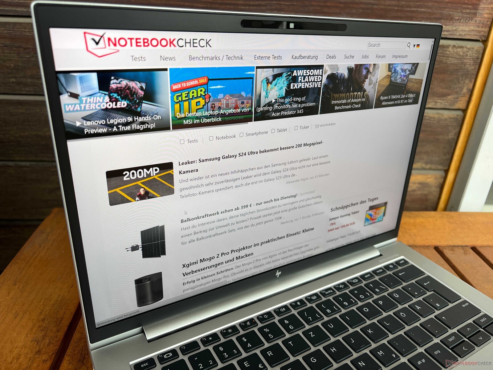 HP erbjuder olika skärmar för EliteBook, från en 250 Nits IPS-skärm och SureView-panelen med 1000 cd/m² inklusive ett integrerat sekretessfilter, även om vi inte skulle rekommendera det på grund av den svaga subjektiva bildkvaliteten. Vår testenhet använder den matta FHD-panelen med låg effekt (1 920 x 1 200 pixlar, 16:10), som annonseras med en ljusstyrka på 400 cd/m². Den subjektiva bildkvaliteten är bra, eftersom innehållet visas tillräckligt skarpt och även ljust innehåll inte är kornigt, även om färgerna kunde ha varit något mer levande. Både ljusstyrkan och färgtemperaturen kan justeras automatiskt via sensorn.