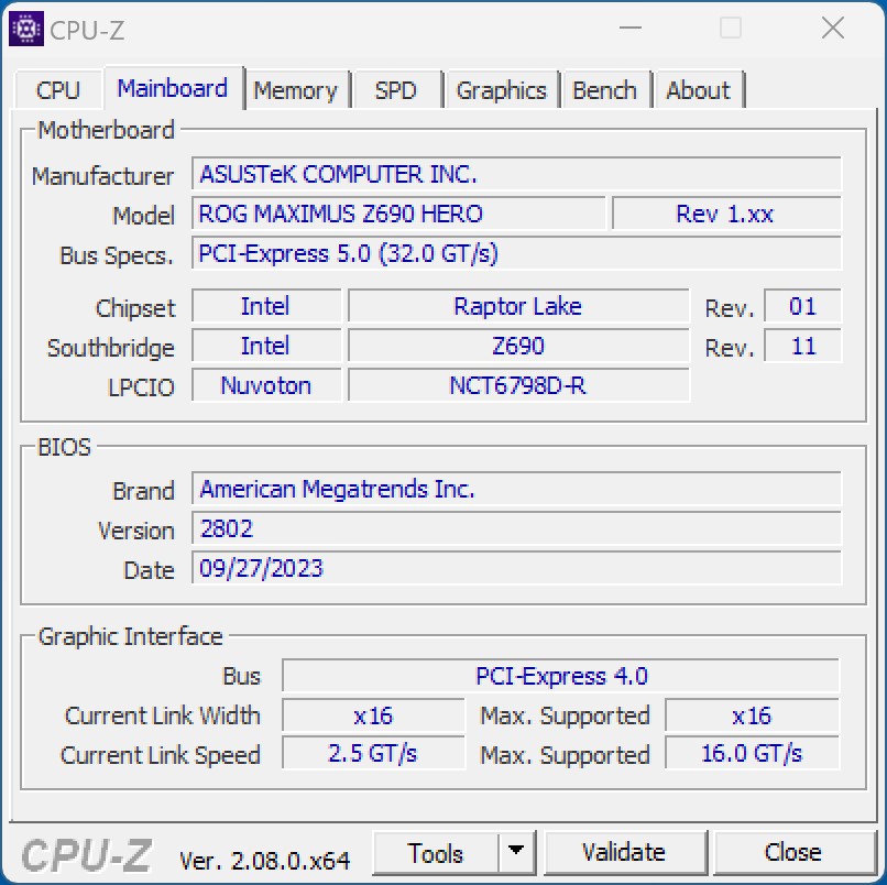 - Asus ROG Maximus Z690 Hero (BIOS v2802)