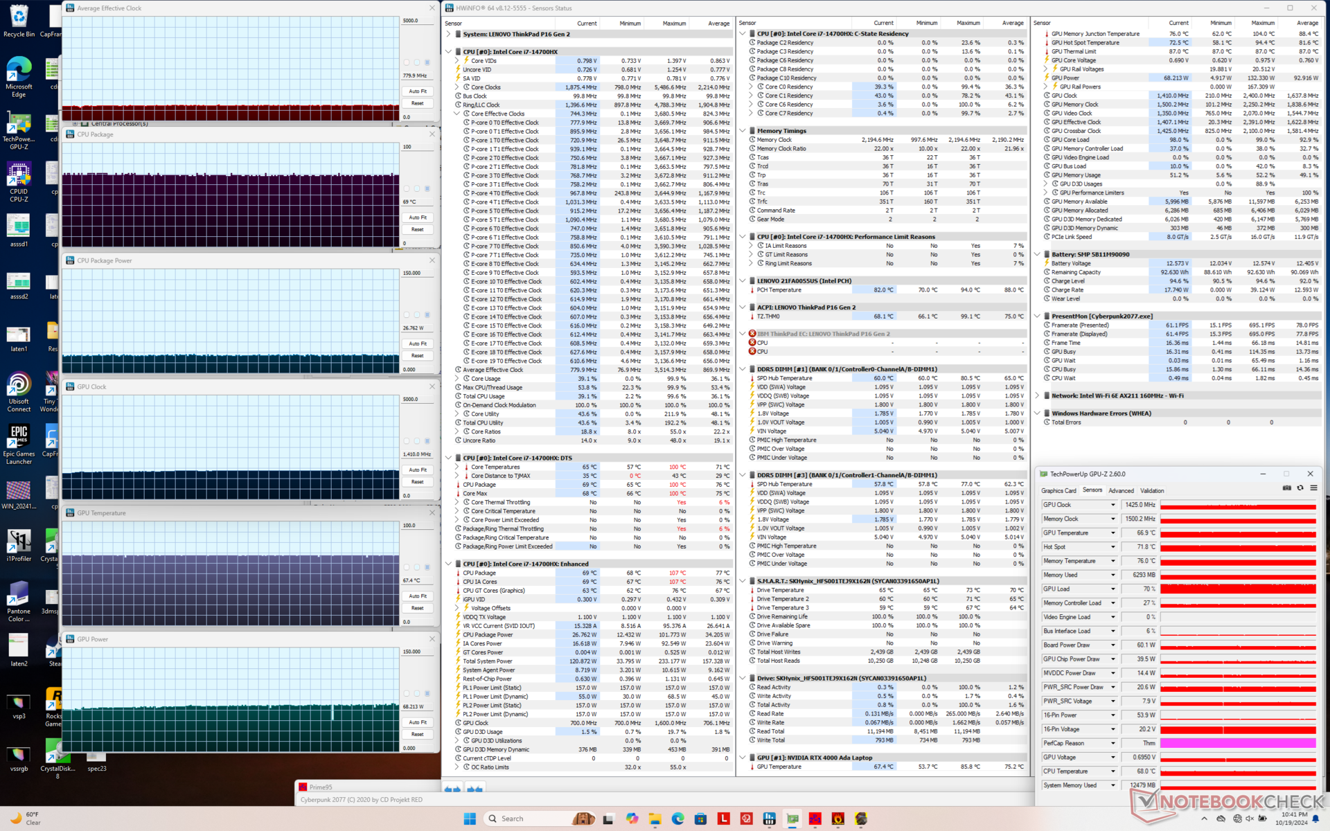 Den kanske mest anmärkningsvärda nackdelen är att GPU:n kan strypas med cirka 10 procent efter några minuters belastning, vilket tyder på att kylningslösningen inte klarar GPU:ns fulla krav på obestämd tid. Batteritiden är också mycket kort, bara några timmar som mest. Trots detta är ThinkPad P16 Gen 2 fortfarande en av de snabbaste arbetsstationerna i sin 16-tums storleksklass.