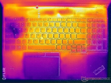 (-) Den maximala temperaturen på ovansidan är 46.6 °C / 116 F, jämfört med genomsnittet av 38.2 °C / 101 F , allt från 22.2 till 69.8 °C för klassen Workstation.